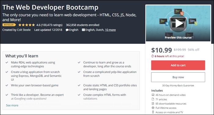 I actually had the team at Udemy help me compile this list of their top web dev courses, given the ratings and the number of students enrolled. Because there are so many to choose from! :)