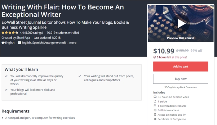Thanks for showing me such great Udemy courses. I was already a fan having taken some excellent writing classes that helped me write content for my small business blog – this was a great class for bloggers https://www.udemy.com/writing-for-business/