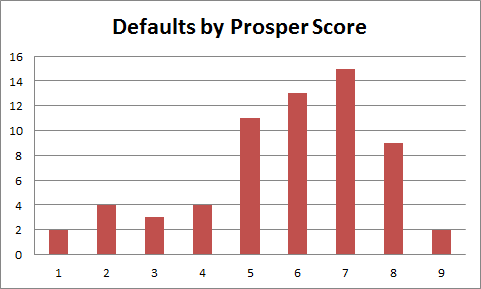 As you say, without the percentage, raw numbers are difficult to evaulate. However, what really stands out to me is the chart of defaults by Prosper Score. If the score is correct, there should be less defaults as the score goes up, but your chart seems the reverse of that, to me. I’ve seen on Prosper-Stats.com the same seemingly non-correlation between Prosper Score and default rates. Their scoring methodology seems suspect to me. But I really enjoyed your post, your assessments, and thank you for once again teaching us all that we need to analyze our assumptions and our results and adjust our investment strategies accordingly. Way to go!